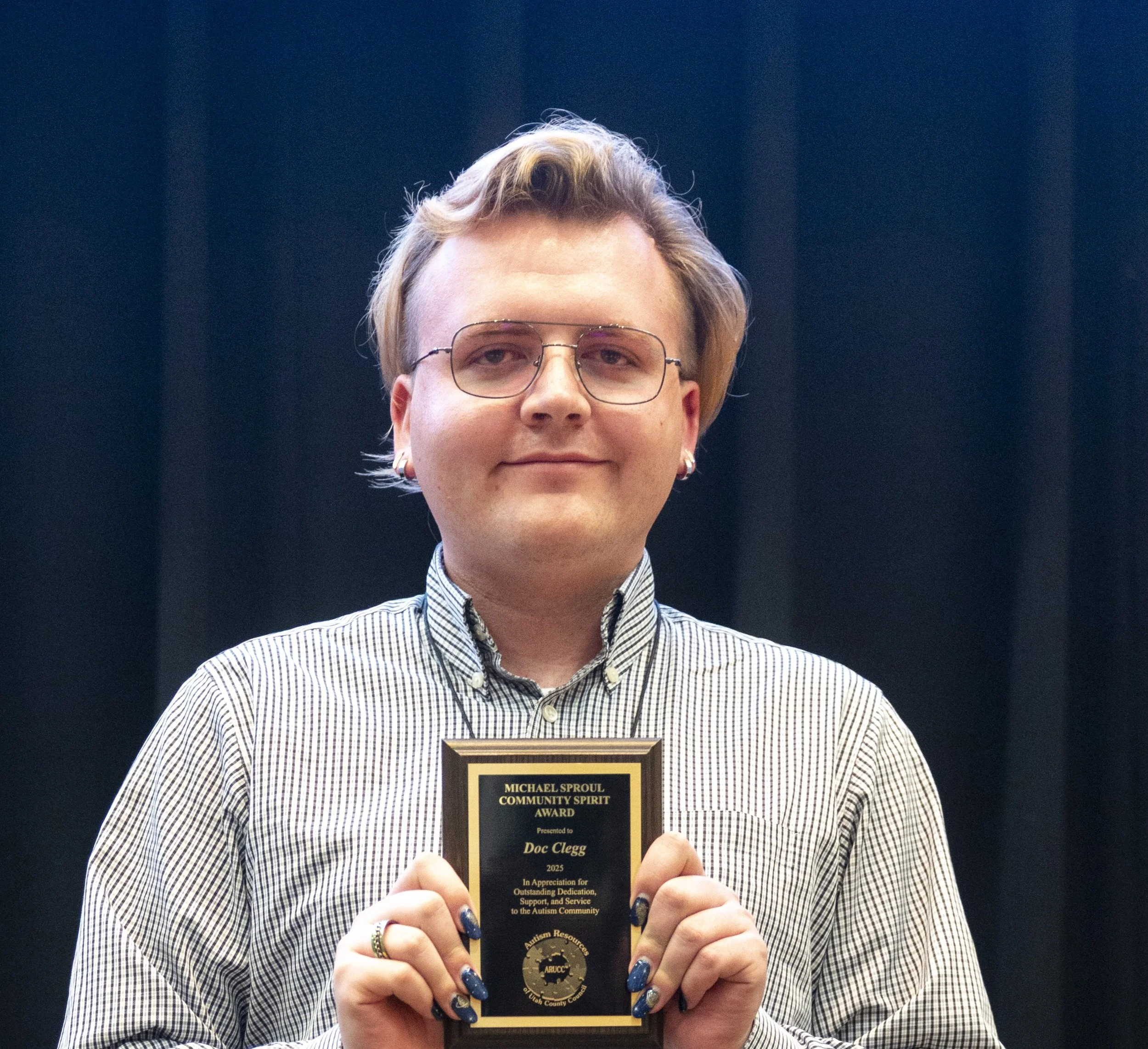 In 2025, Doc received the Michael Sproul Community Spirit Award from the Autism Resources of Utah County Council (ARUCC) in recognition of their dedication and service to the autism community in Utah County. They are also a member of the leadership team for Autism Incorporated, UVU’s Autism Club"
